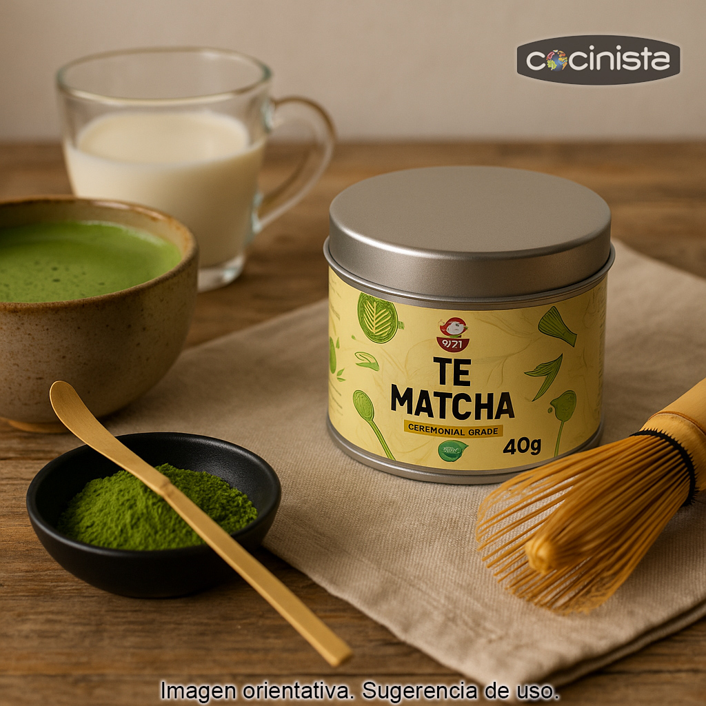 - Para matcha latte: disuelve 1–2 g de matcha con un poco de agua caliente y añade 150–200 ml de leche caliente o fría. Endulza si lo deseas.