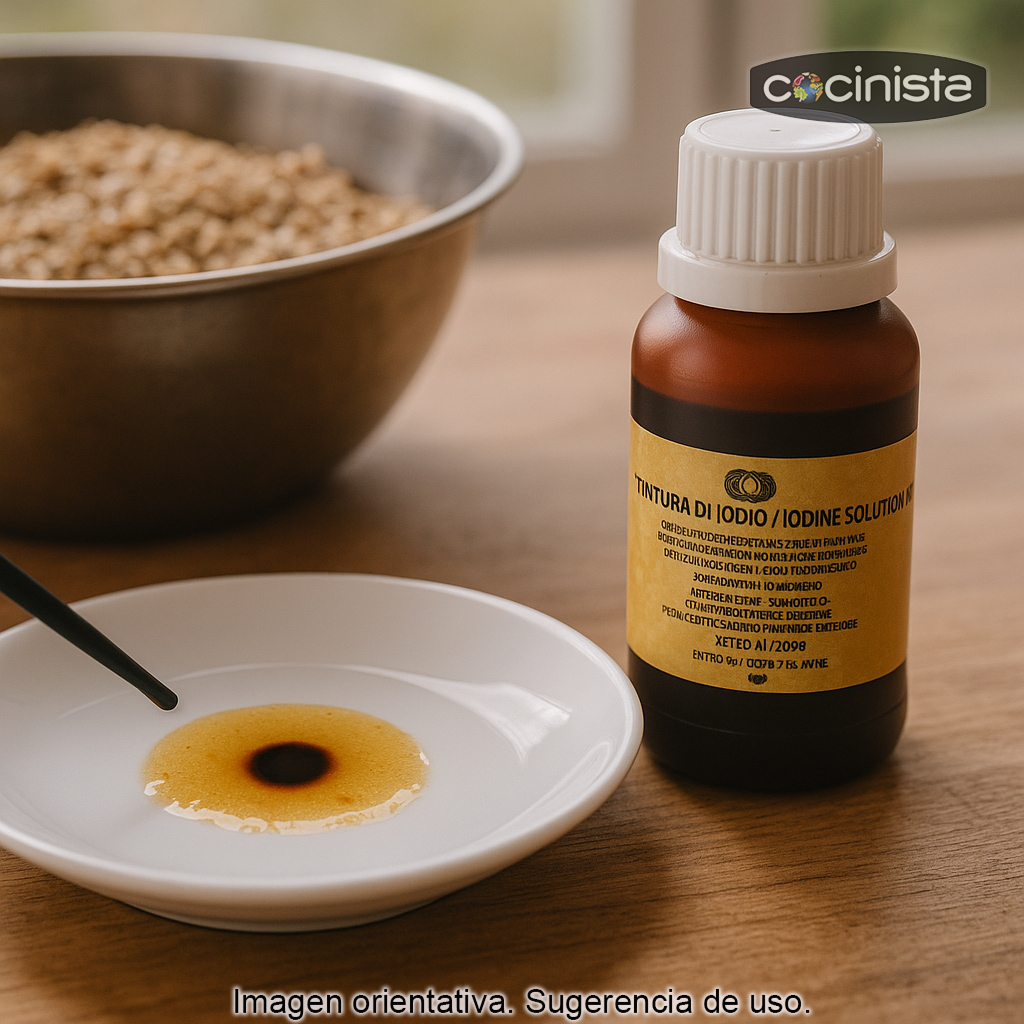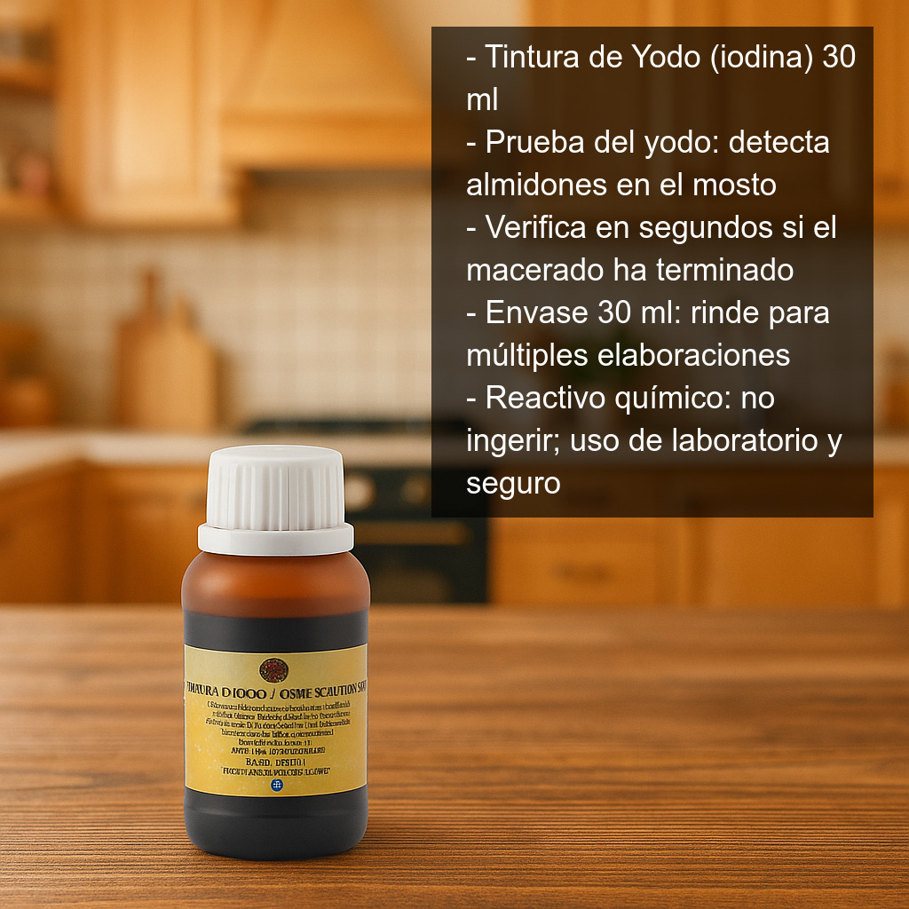 La Tintura de Yodo (iodina) 30 ml es un reactivo clásico e imprescindible para cerveceros caseros y profesionales que quieren controlar con precisión el proceso de macerado de maltas. Su uso principal es realizar la conocida prueba del yodo, un método rápido y fiable para comprobar si todavía quedan almidones sin convertir en azúcares fermentables durante la elaboración de cerveza.
