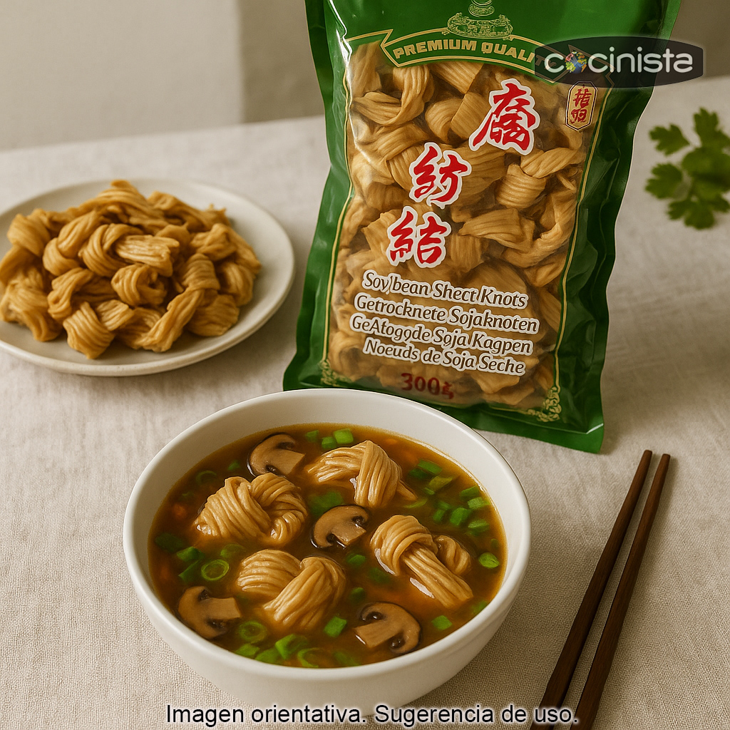 Elaborados a partir de soja, estos nudos son una opción versátil para recetas vegetarianas y veganas, así como para quienes buscan variar sus fuentes de proteína. Su formato en nudos permite que el sabor penetre bien y que el bocado resulte consistente, perfecto para platos con mucho caldo o cocción lenta.
