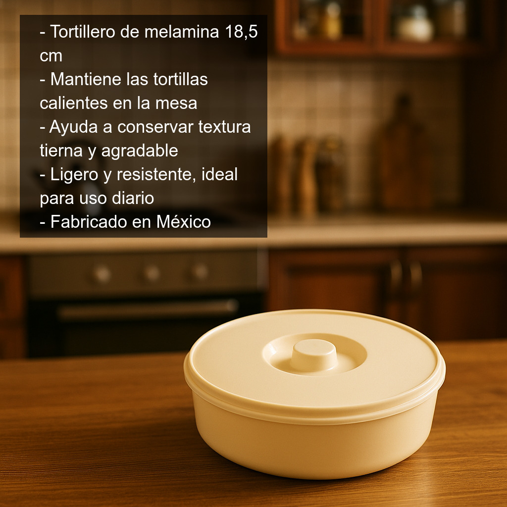 Fabricado en melamina, este tortillero combina resistencia y ligereza, ideal para el uso diario en casa. Su formato compacto ayuda a que el calor se mantenga mejor y a que las tortillas no se resequen mientras las vas sirviendo.