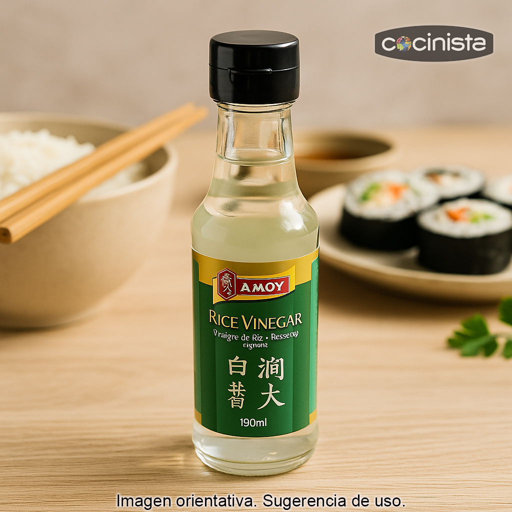 Un básico para preparar sushi en casa, mejorar tus ensaladas y dar un toque auténtico a tus recetas asiáticas con un vinagre de arroz equilibrado y fácil de usar.