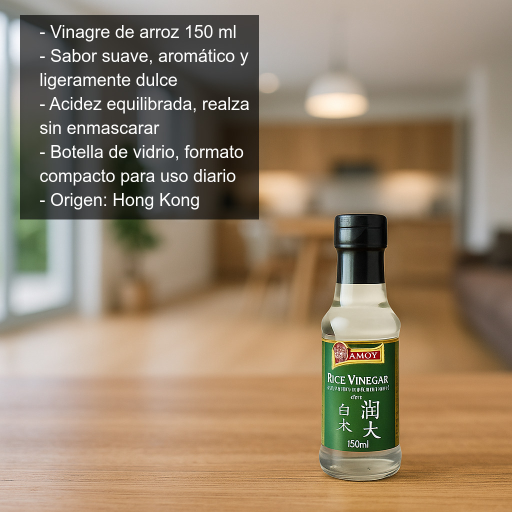 El vinagre de arroz (150 ml) es un condimento imprescindible en la cocina asiática por su sabor suave, aromático y ligeramente dulce. A diferencia de otros vinagres más agresivos, aporta acidez equilibrada y un toque delicado que realza los ingredientes sin enmascararlos. Es ideal tanto para recetas japonesas como para preparaciones chinas, coreanas o de fusión.