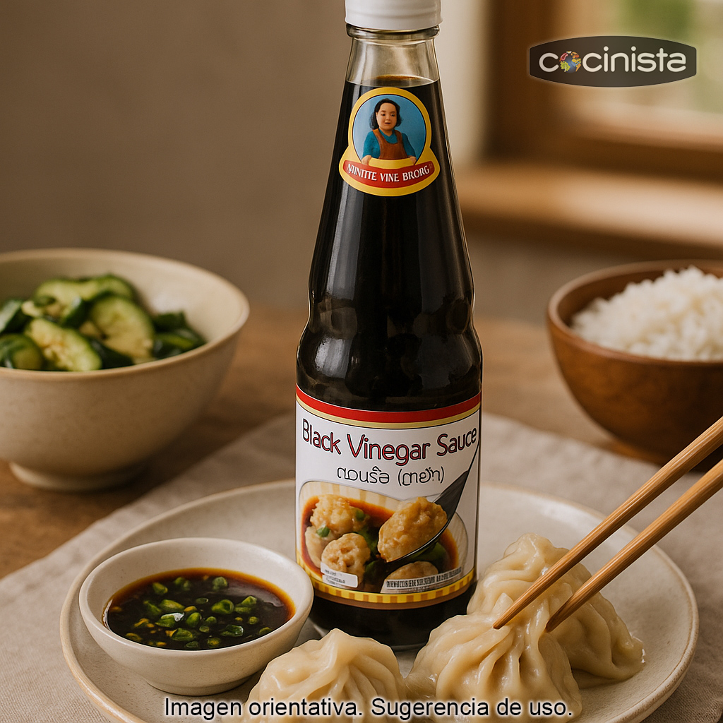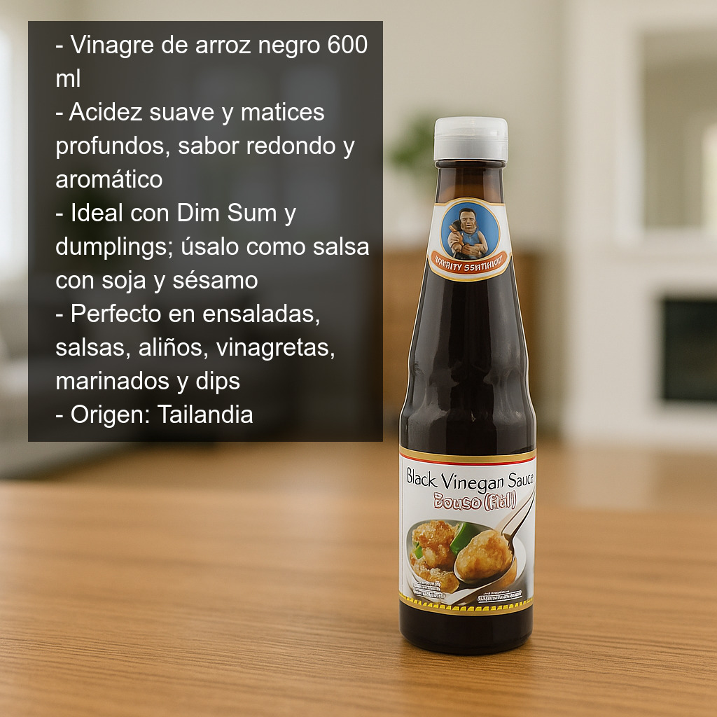 Vinagre de arroz negro (también conocido como vinagre oscuro) en formato de 600 ml, un imprescindible de la cocina asiática para quienes buscan un toque equilibrado entre acidez suave y matices profundos. Este vinagre aporta un sabor redondo y aromático, ideal para realzar recetas sin enmascarar los ingredientes.