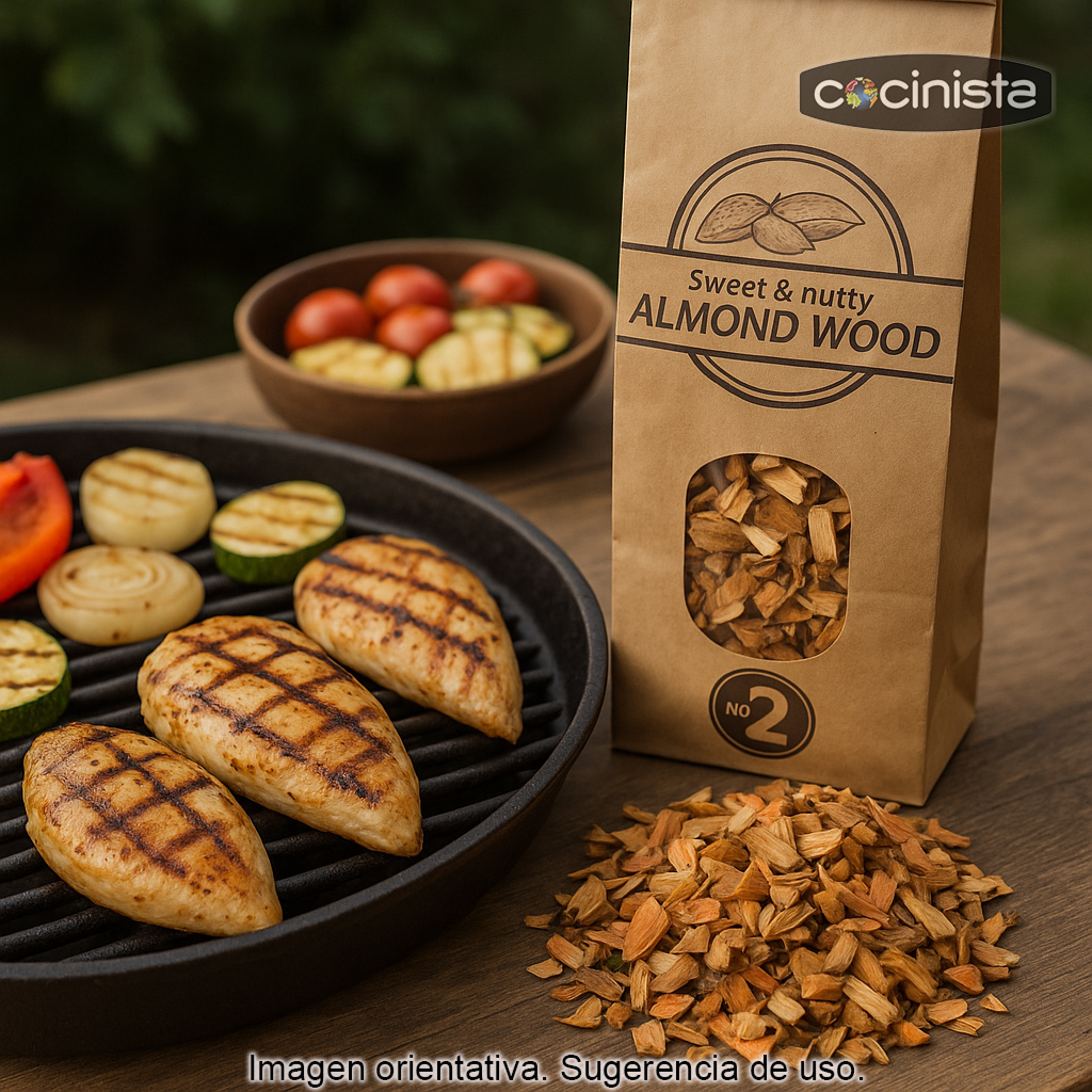 Elaborada con madera natural de almendro, esta viruta de madera para ahumar genera un humo denso y aromático que impregna los alimentos con el característico aroma suave, ligeramente dulce y tostado de la almendra. Es una opción ideal para quienes buscan un ahumado equilibrado, nada agresivo, perfecto tanto para iniciarse como para dar un toque gourmet a carnes, aves y verduras.