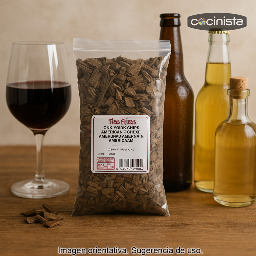 Formato: 250 g de virutas de roble americano muy tostado. Ideal para quienes buscan un método flexible para aportar aroma y sabor a barrica con control total sobre la intensidad.